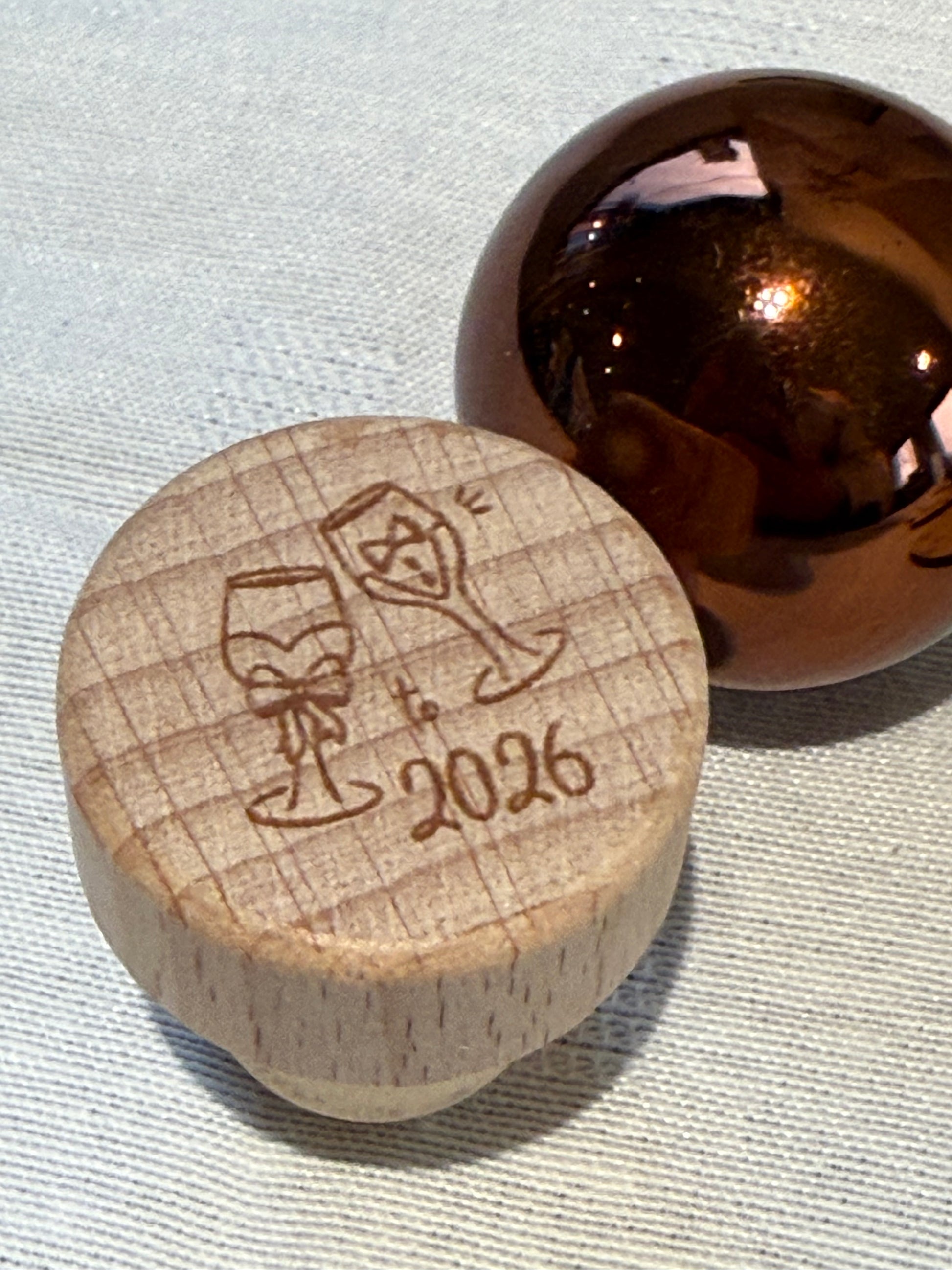 Herbruikbare flesdop, met natuurlijke houten bovenkant en luchtdichte bodem.