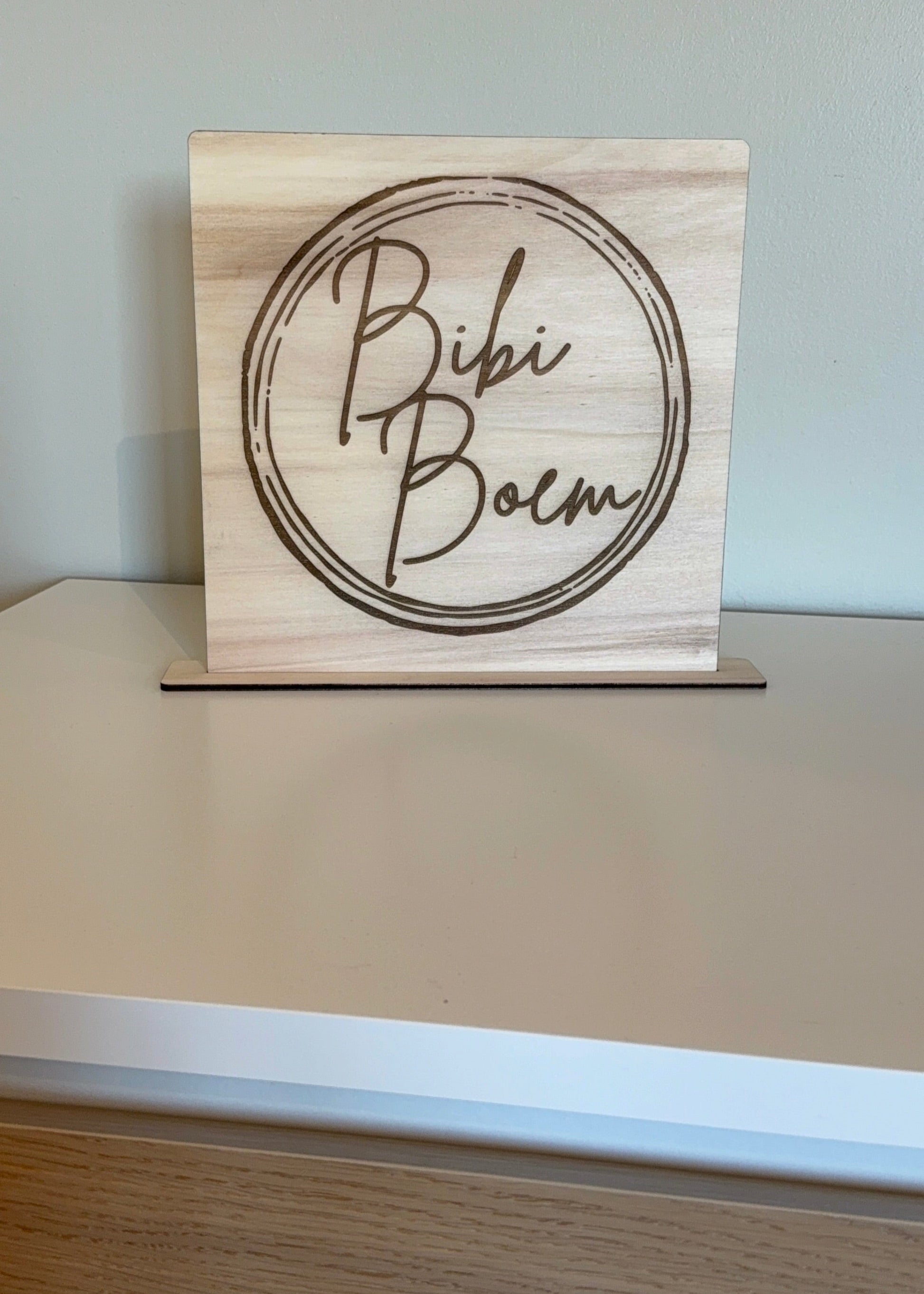 Zet jouw logo letterlijk in de kijker met onze HoutGravure! Deze stijlvolle houten staander met gravure is dé perfecte eyecatcher voor je branding. De combinatie van natuurlijk hout en precieze lasergravure geeft je merk een warme, authentieke uitstraling. Ideaal voor op een balie, beursstand of als decoratief element op kantoor.