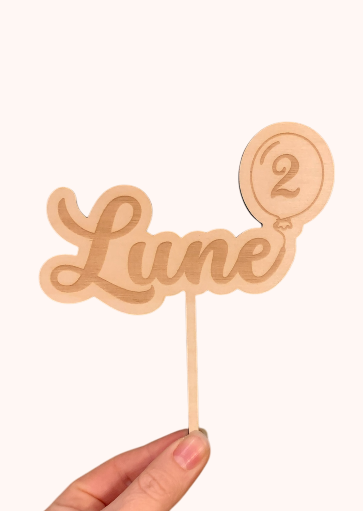 De taarttopper is gemaakt van 4mm populieren multiplex, wat zorgt voor een natuurlijke en elegante uitstraling.